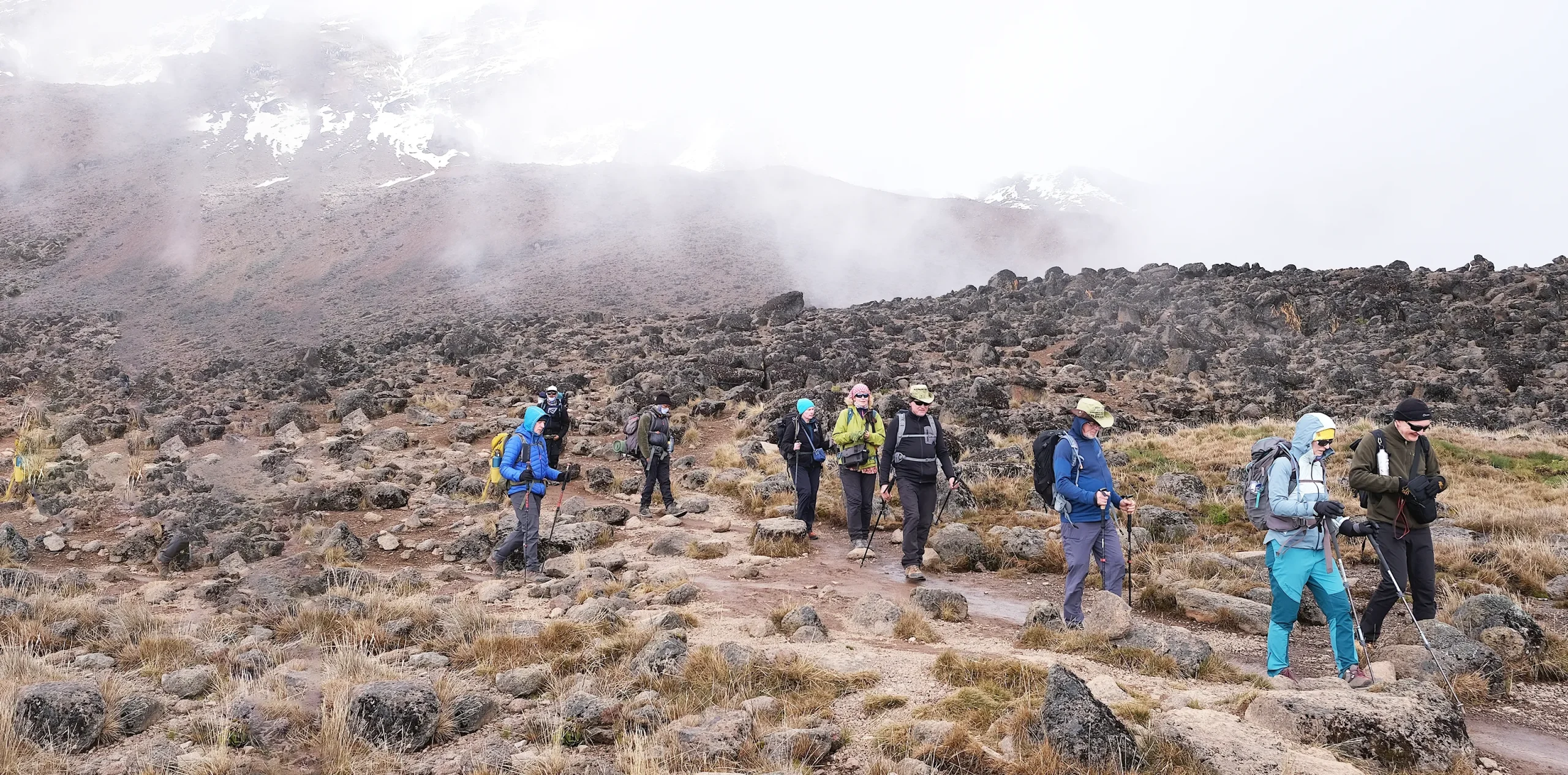 We leave the moorland behind now and a gentle grade walk takes us across the high altitude Shira Caldera and up to Lava Tower where we have fabulous views of Arrow glacier. We then retrace our steps, decreasing elevation and make our way to Moir hut where we will camp for the night at just below 4200m.
